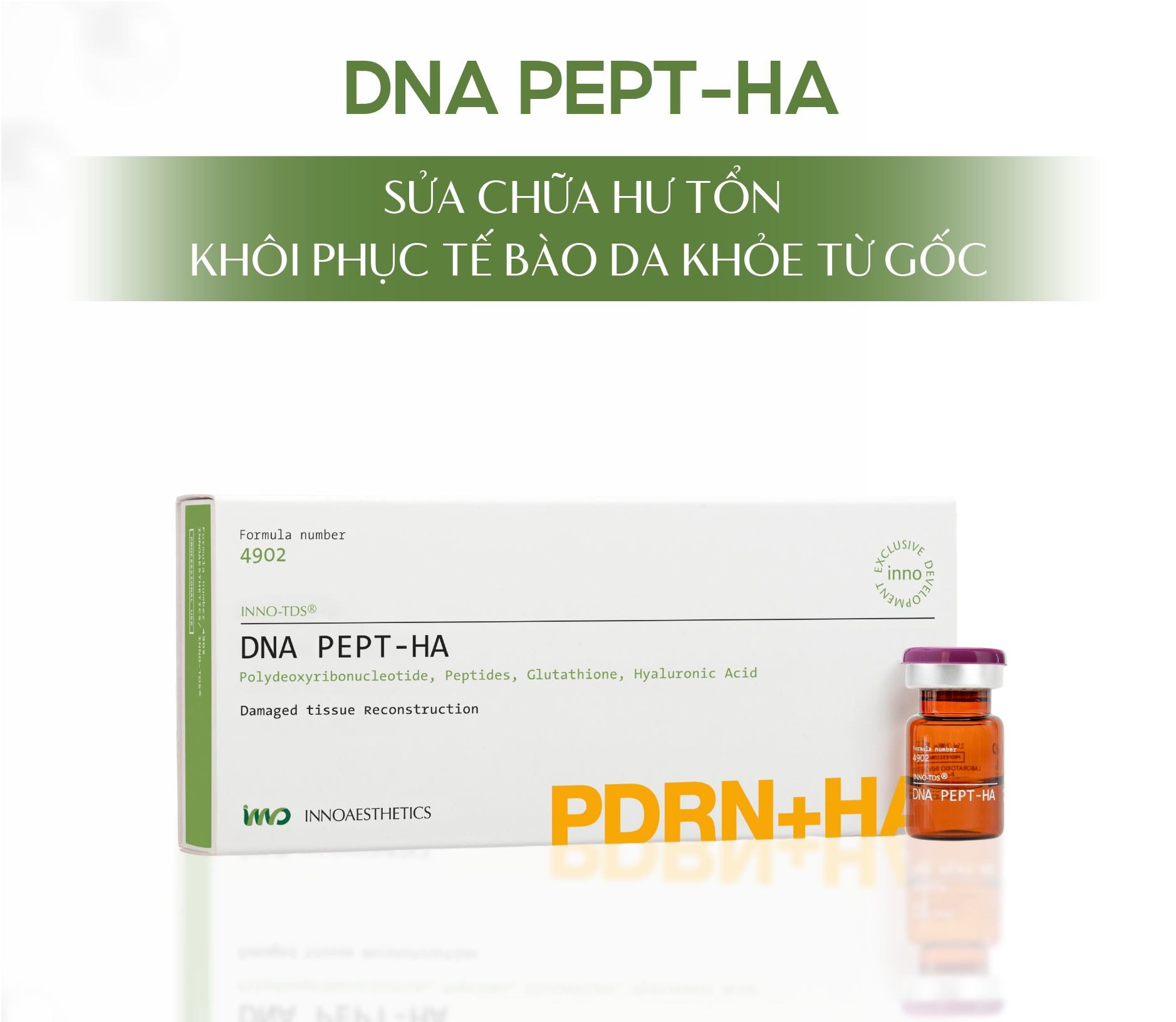 DNA PEPT-HA là tinh chất thúc đẩy quá trình tổng hợp Collagen, tái cấu trúc da, và hỗ trợ phục hồi các mô bị tổn thương. Với sự kết hợp mạnh mẽ của Polydeoxyribonucleotide, Peptides, Glutathione, và Hyaluronic Acid, sản phẩm này đặc biệt hiệu quả trong việc làm lành da, khôi phục cân bằng da, làm săn chắc lớp hạ bì, và giảm thiểu các nếp nhăn, đường biểu cảm.