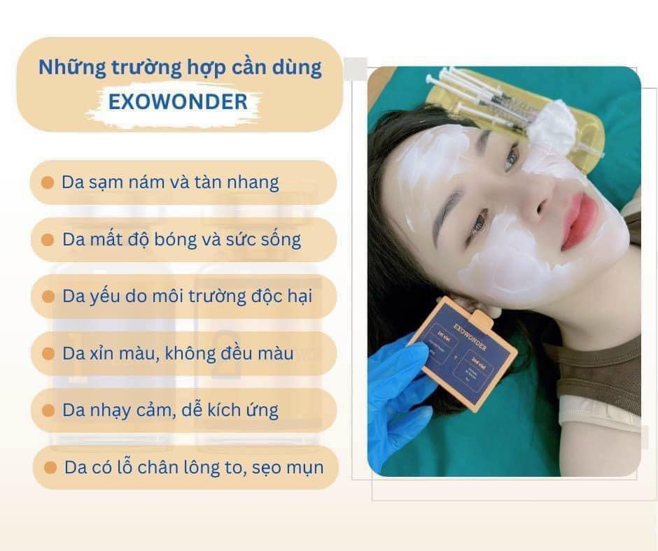 - Tế bào gốc Exosome Exowonder cải thiện sức khỏe làn da, có khả năng xóa mờ nám, tàn nhang, thâm sạm, trắng da, căng bóng giảm các nếp nhăn trên làn da.