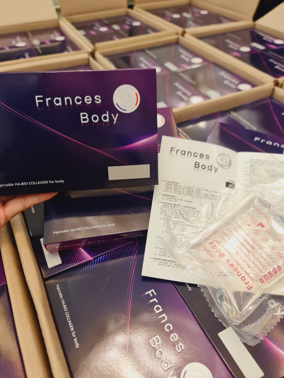 – Frances Body là một thiết bị y tế vô trùng bao gồm các hạt siêu nhỏ của các phân tử collagen HA-Bio liên kết ngang.