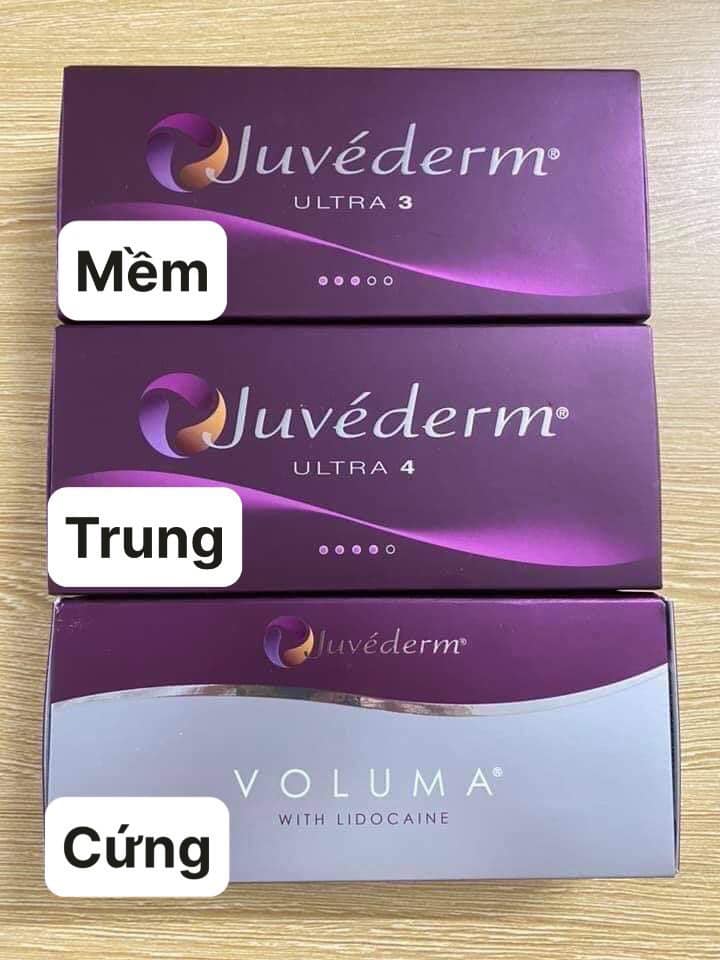 - Juvederm Ultra3 (Trung): được sử dụng để làm giảm các nếp nhăn trên rãnh mũi má và tăng thêm khối lượng cho môi và vùng lông mày.
