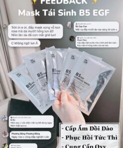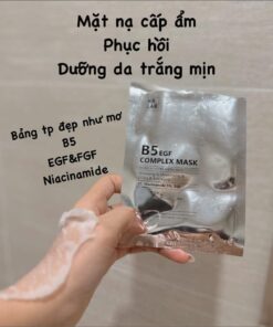 Mặt nạ phục hồi da B5 EGF Complex Mask là “cứu tinh” dành cho da sau trị liệu, da bị tổn thương, hay kích ứng, da có dấu hiệu lão hóa sớm, sạm màu, nếp nhăn,…Mặt nạ có độ lành tính cao, mang hiệu quả bất ngờ chỉ sau một lần sử dụng. Với công thức độc đáo gồm vitamin B5, yếu tố tăng trưởng EGF, Niacinamide, tinh chất rau má,… làm dịu, cấp ẩm cho da tức thì, thúc đẩy quá trình tái tạo phục hồi da, tăng sinh collagen cho da đàn hồi, tươi trẻ.